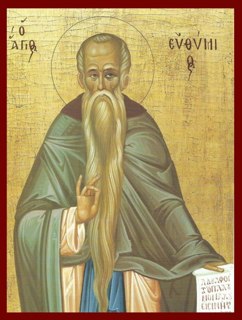 God revealed to Saint Euthymius the time of his death. On the eve of the Feast of Saint Anthony the Great (January 17) Saint Euthymius gave the blessing to serve the all-night Vigil. When the service ended, he took the priests aside and told them that he would never serve another Vigil with them, because the Lord was calling him from this earthly life.