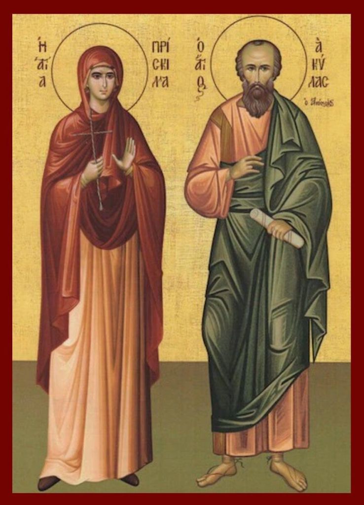 Saint Aquila and Saint Priscilla were Jews and in the early years they lived in Rome. After their persecution by Rome because of religious unrest over the synagogues of Jesus Christ, they emigrated to Corinth. There, they used to work in the manufacture of special fabrics for tents.