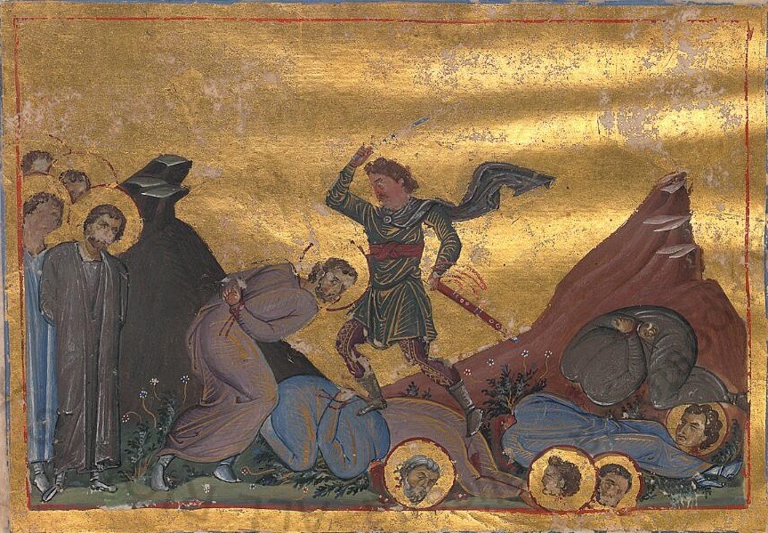 Firmilian tortured the youths for a long time, trying to learn the location of this unknown city, and he tried to persuade them to apostatize. Accomplishing nothing, the governor sentenced them to be beheaded with a sword, along with Pamphίlios, Valens, and Paul.
