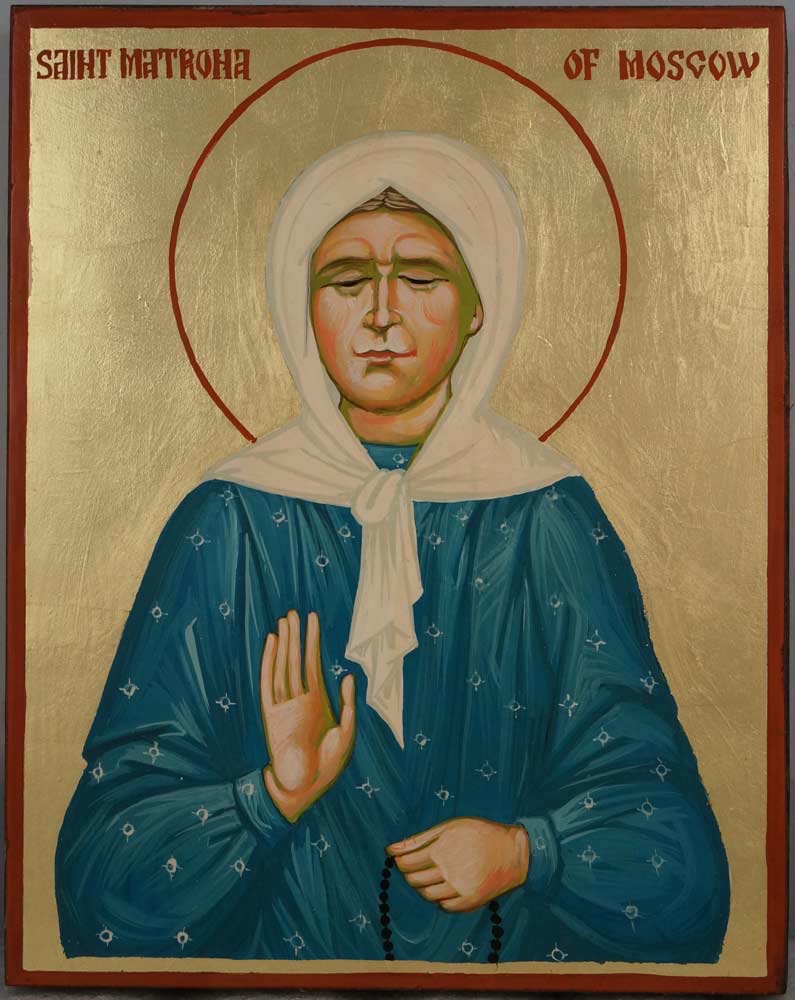 Today, O faithful, let us glorify the divinely-wise blessed Eldress Matrona, / who blossomed in the land of Tula and who gloriously adorned the city of Moscow; / for she, not knowing the light of day, / was illumined by the light of Christ and was enriched with the gift of healing. / Having been a migrant and a wanderer on earth, / now, in the heavenly Bridal Chamber, she stands before God’s throne and prays for our souls.