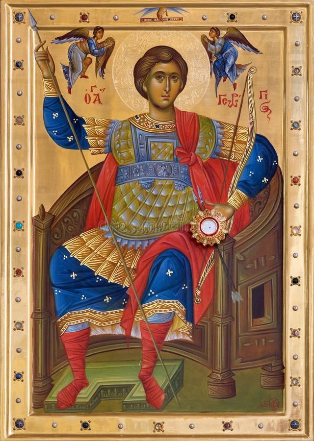 When he became a man, Saint George entered into the service of the Roman army. He was handsome, brave and valiant in battle, and he came to the notice of the emperor Diocletian (284-305) and joined the imperial guard with the rank of comites, or military commander.