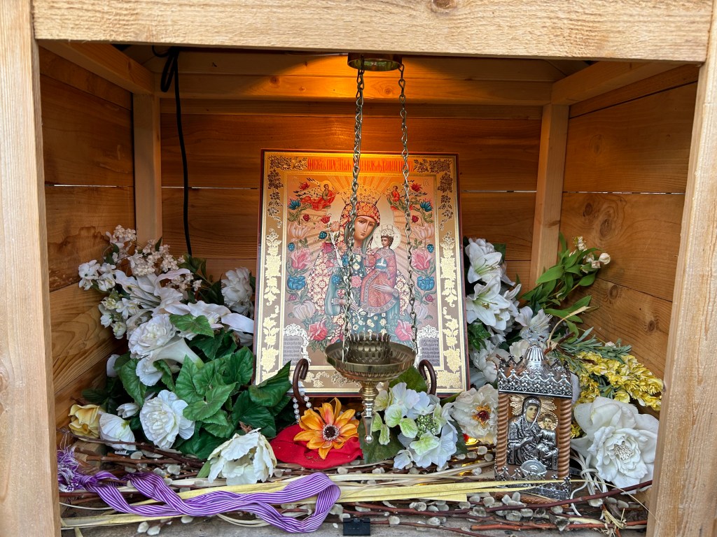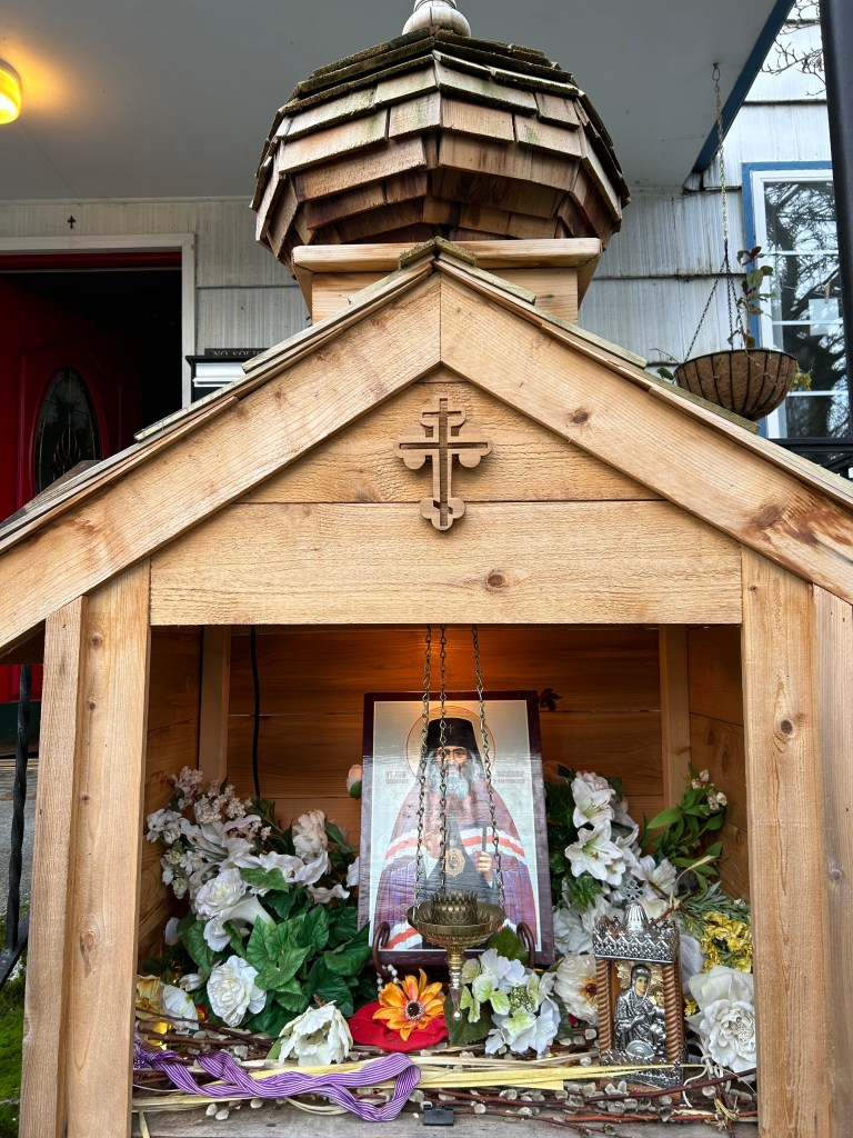 Why is there a rustic roadside shrine complete with Byzantine cross and onion dome on Lafayette Avenue in North Beacon Hill?